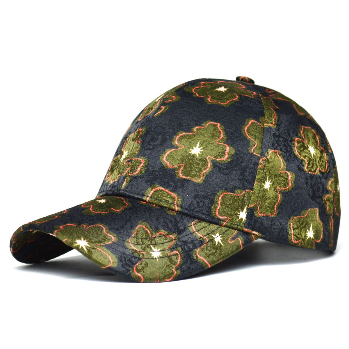 Fashion women's baseball cap with ethnic floral print design.